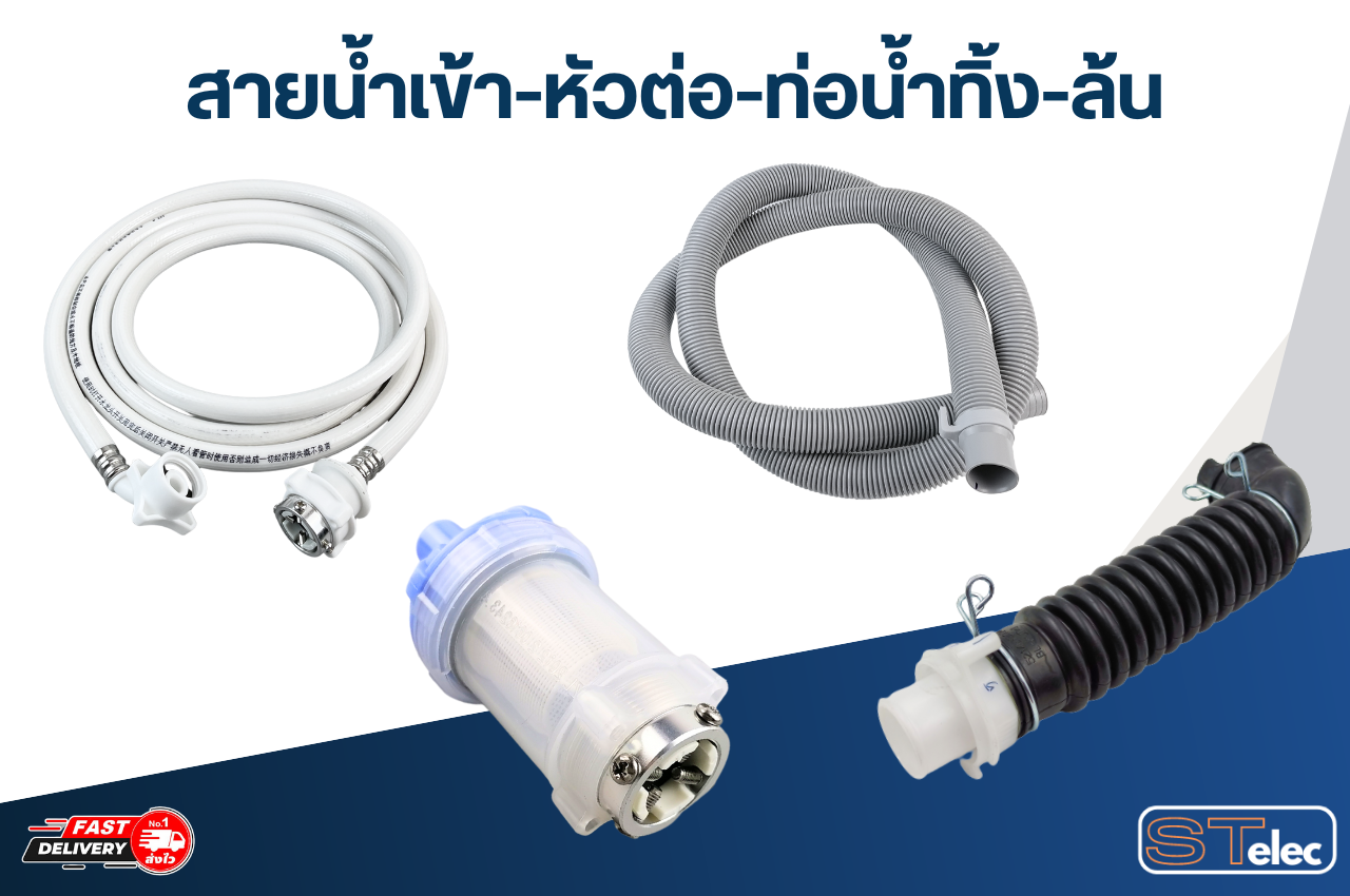 สายน้ำเข้าเครื่องซักผ้า หัวก็อกสายน้ำเข้าเครื่องซักผ้า และสายน้ำทิ้งเครื่องซักผ้าทุกรุ่น ทุกยี่ห้อ