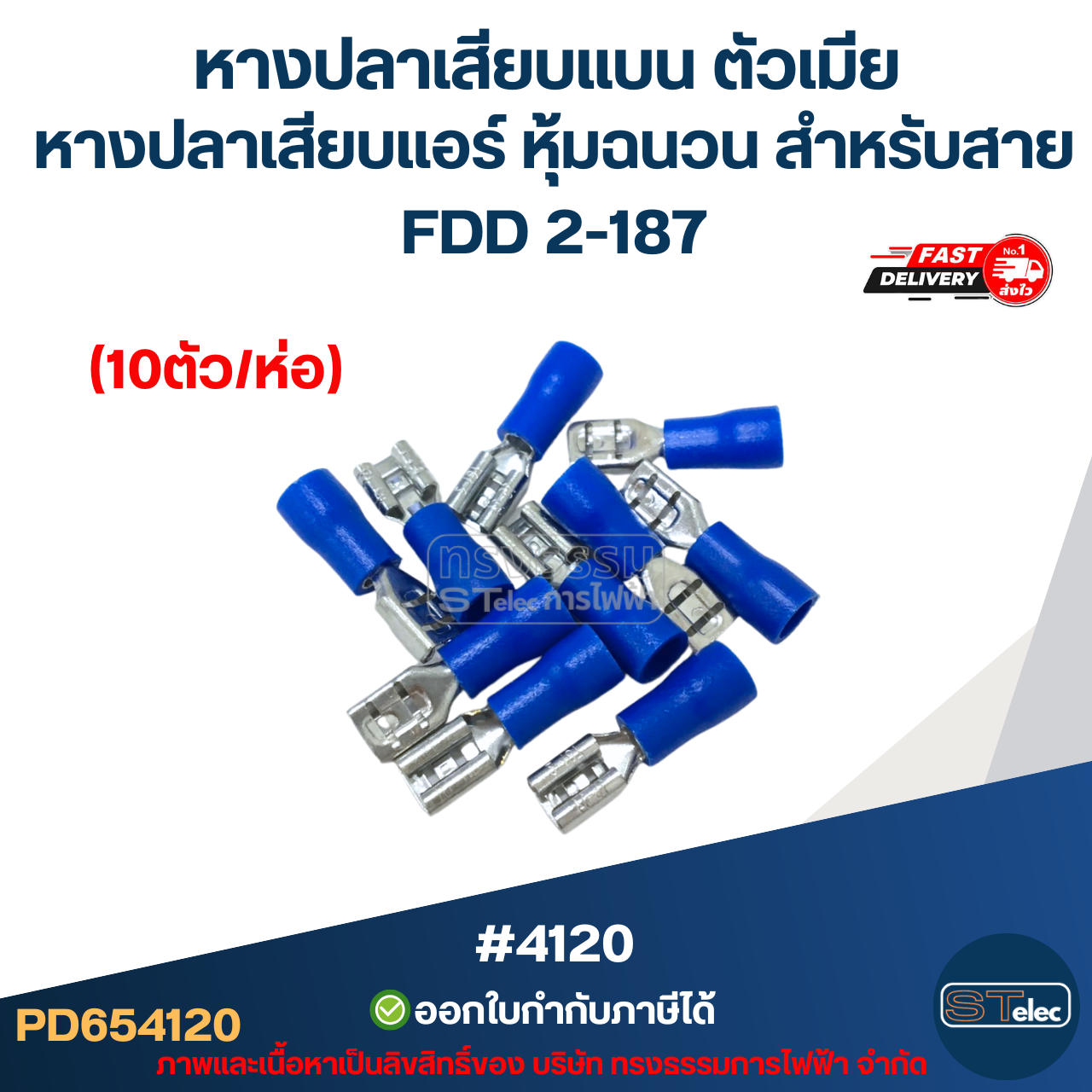 - ประเภท (Type): FDD (Insulated Female Disconnector) เป็นหางปลาแบบ ตัวเมีย ที่มีฉนวนหุ้ม