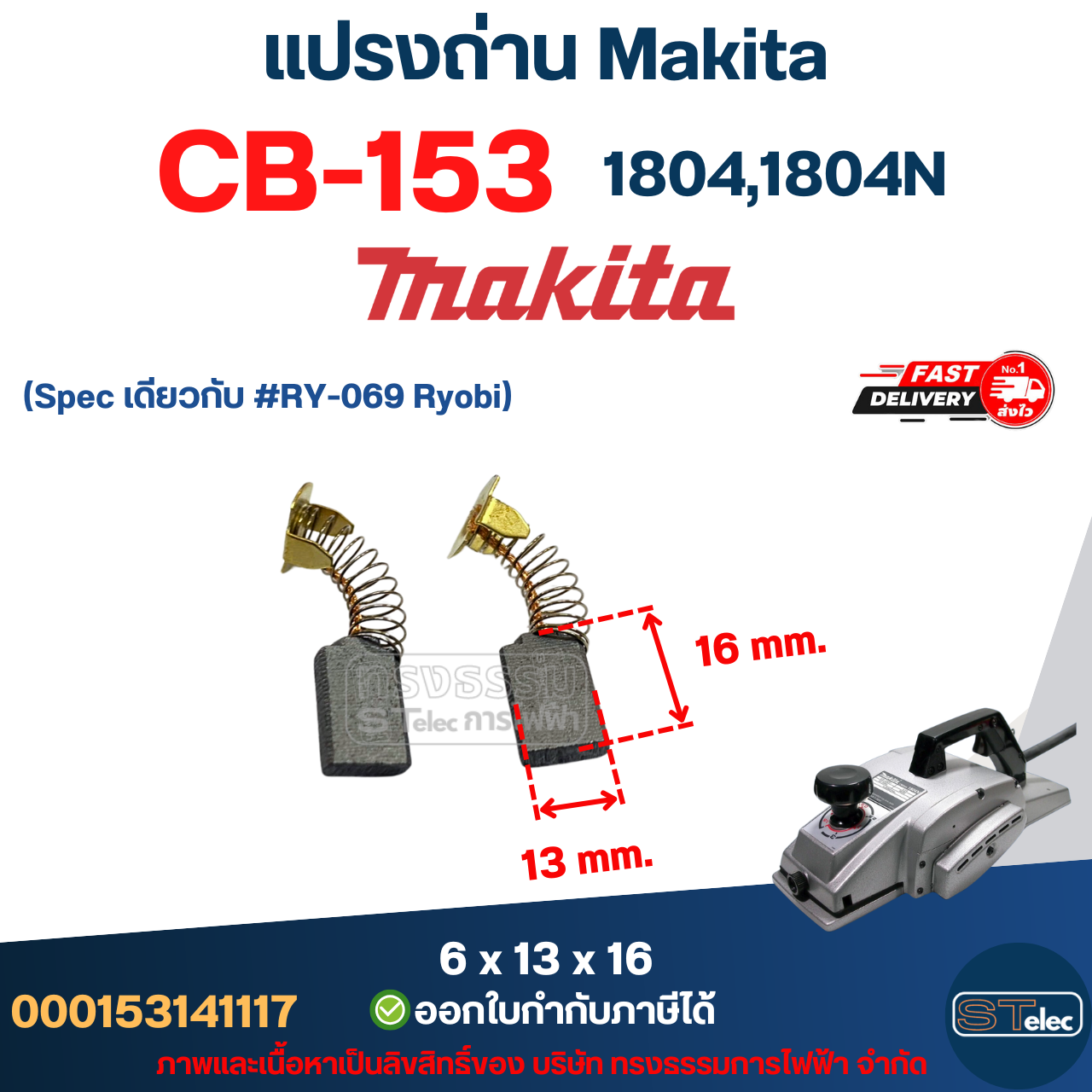แปรงถ่าน กบไฟฟ้า Makita รุ่น 1804, 1804N เบอร์ CB153 #6 TW1000 ***สามารถใช้ #RY-069 Ryobi แทนได้ค่ะ*** ✅ออกใบกำกับภาษีได้✅ ทรงธรรมการไฟฟ้า ยินดีให้บริการค่ะ ศูนย์อะไหล่ เครื่องใช้ไฟฟ้า- อะไหล่เครื่องมือช่าง ครบวงจร อะไหล่เครื่องใช้ไฟฟ้าทุกประเภท พัดลม - เครื่องซักผ้า - ไมโครเวฟ ฯลฯ