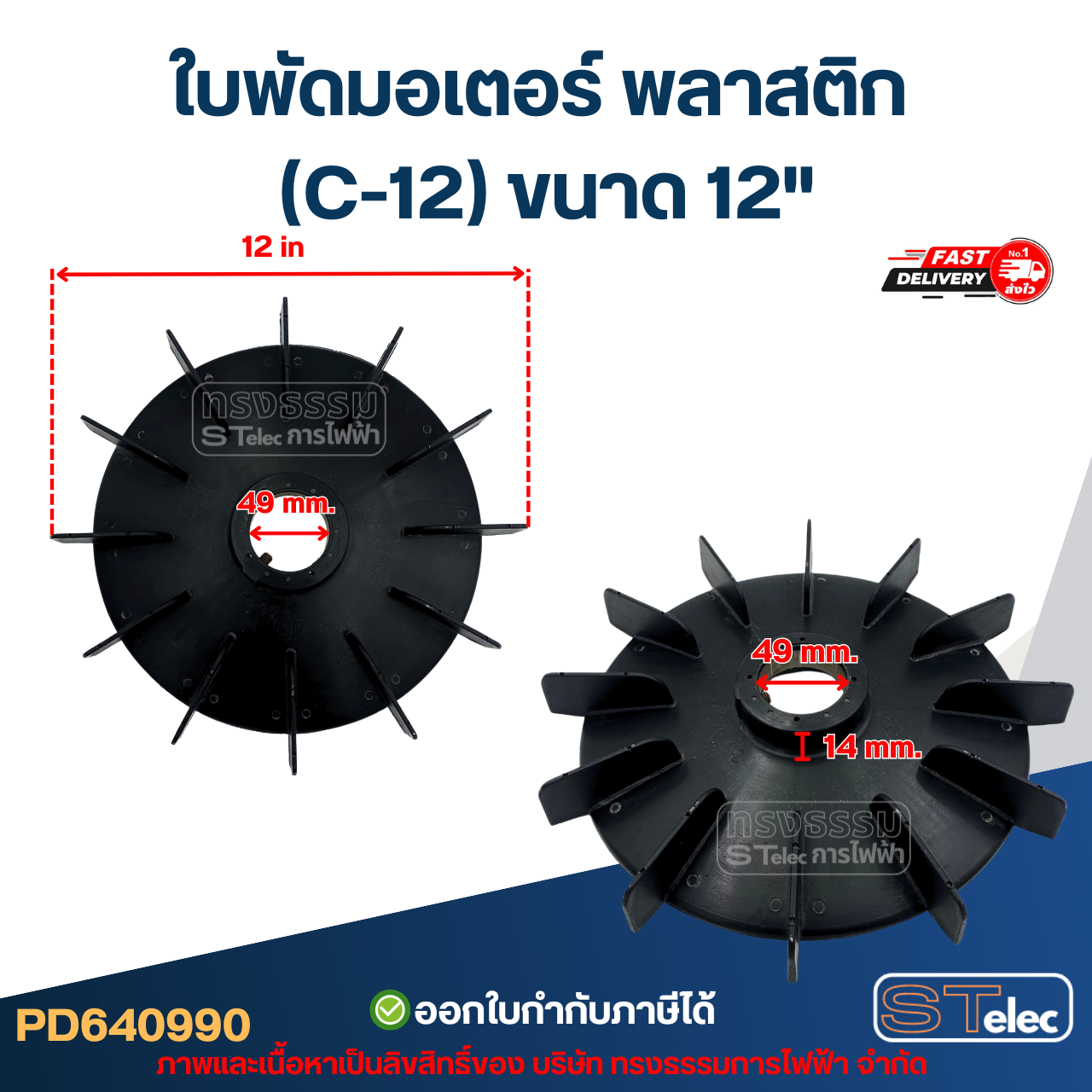 ใบพัดระบายความร้อน มอเตอร์ พลาสติก(PVC) ขนาดกว้าง 12" #C-12