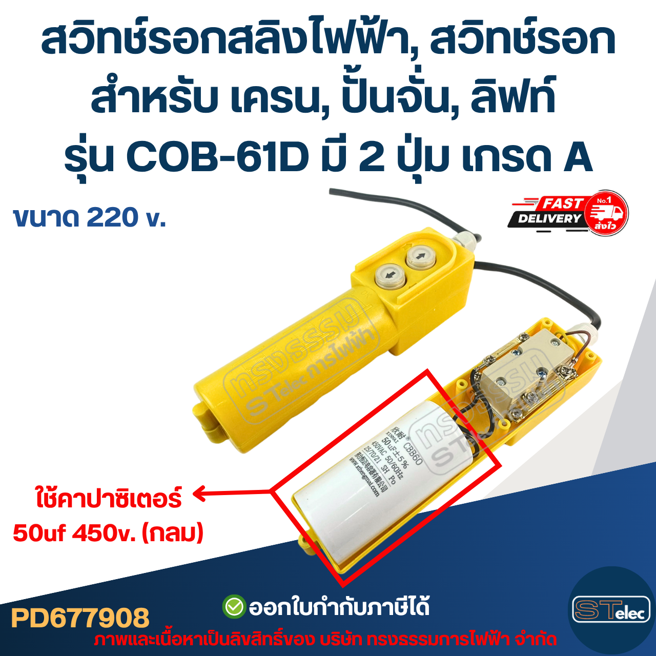 สวิทช์รอกสลิงไฟฟ้า, สวิทช์รอก สำหรับ เครน, ปั้นจั่น, ลิฟท์ ขนาด 220V. รุ่น COB-61D มี 2 ปุ่ม เกรด A