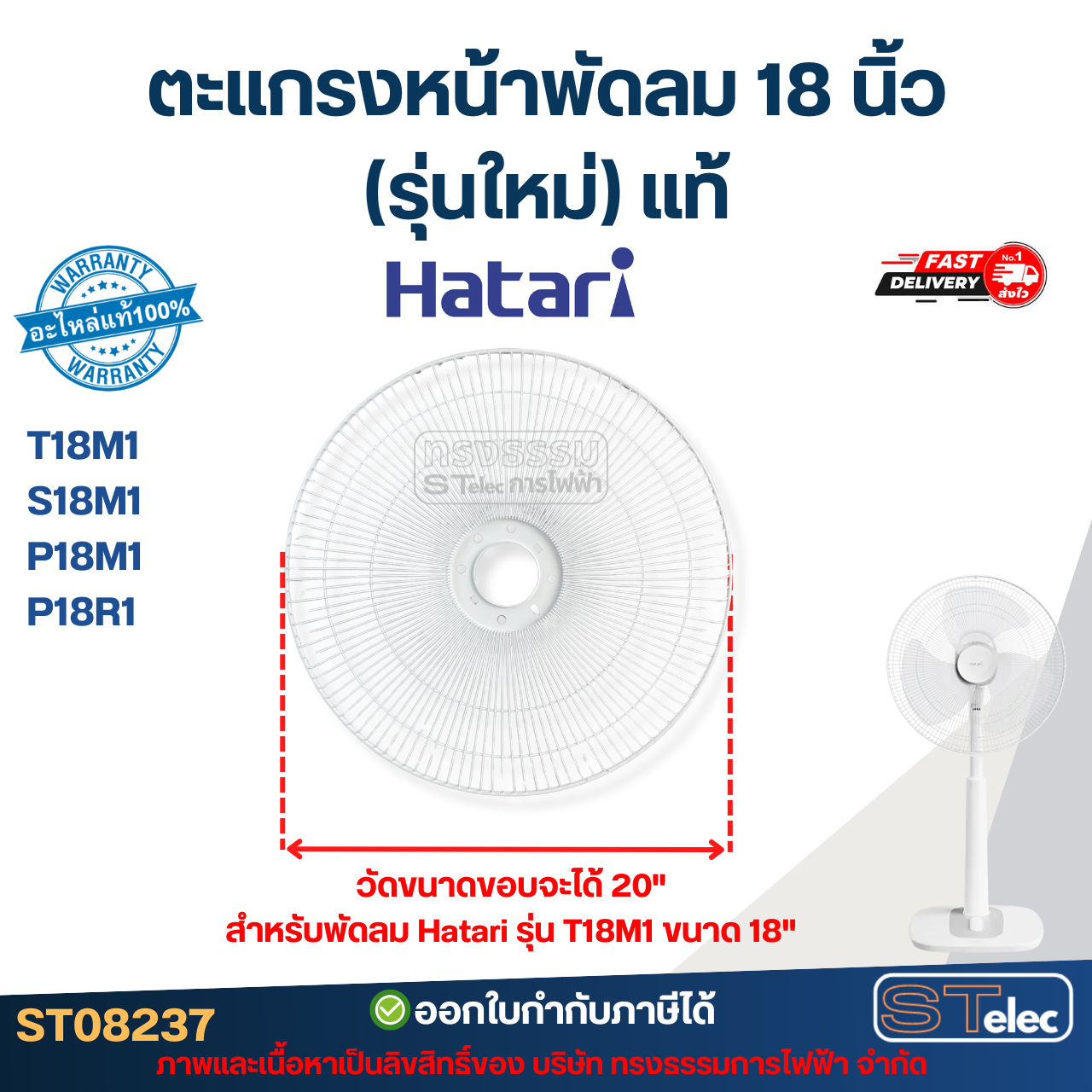 ตะแกรงหน้าพัดลม Hatari 18 นิ้ว รุ่น T18M1, S18M1, P18M1, P18R1 (รุ่นใหม่) แท้ อะไหล่พัดลม