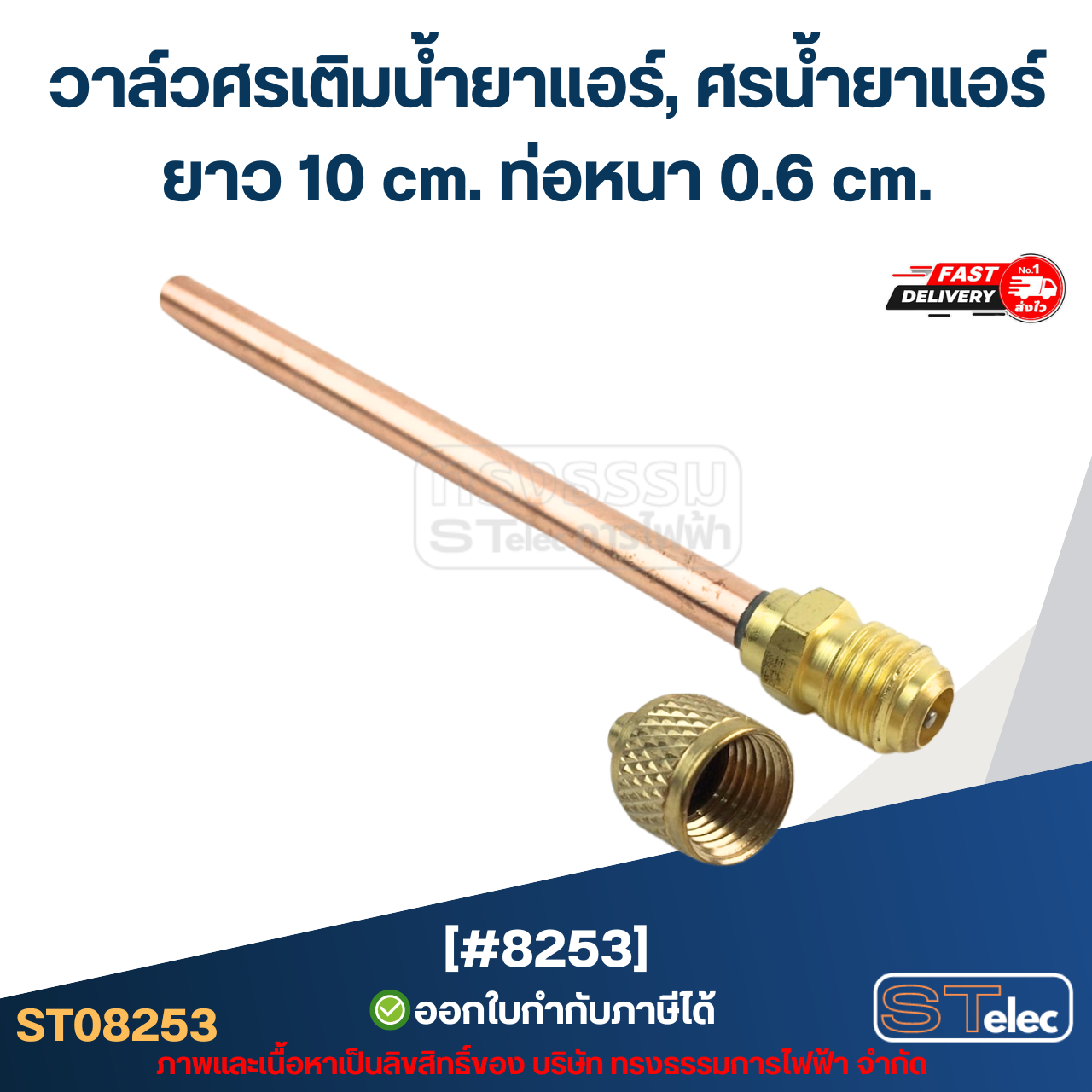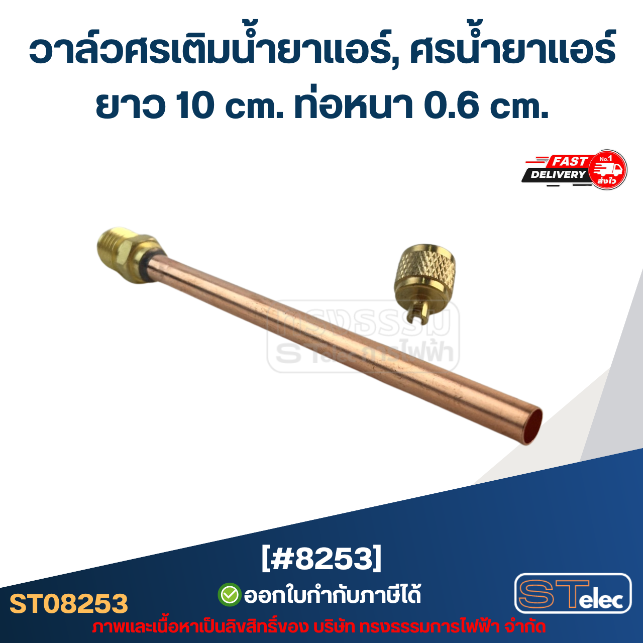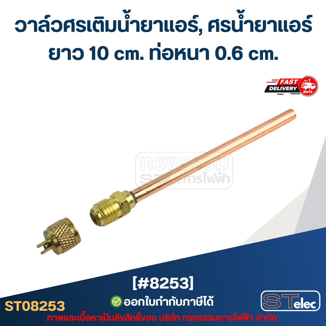 วาล์วศรเติมน้ำยาแอร์, ศรน้ำยาแอร์ [#8253] ยาว 10 cm. ท่อหนา 0.6 cm.